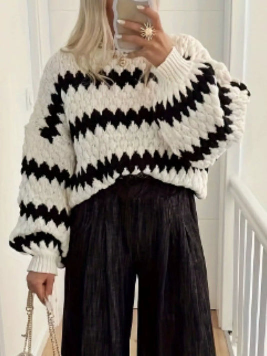 Striped round neck dropped shoulder sweater