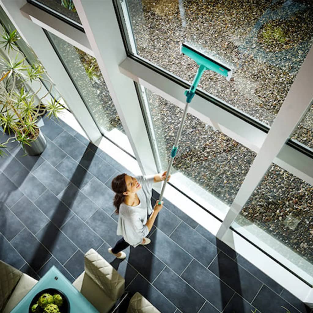 De wisser levert een geweldige prestatie dankzij het streepvrij schoonmaken. Met een unieke, alles kunnende microvezel hoes en trekker absorbeert hij veel water en voorkomt druppelen. 2 beweegbare scharnieren zorgen voor de ideale hoek om schoon te maken op moeilijk te bereiken plaatsen. De raamwisser is verbonden met een telescoopsteel dat uitgeschoven kan worden van 1,1 tot 1,9 m.
