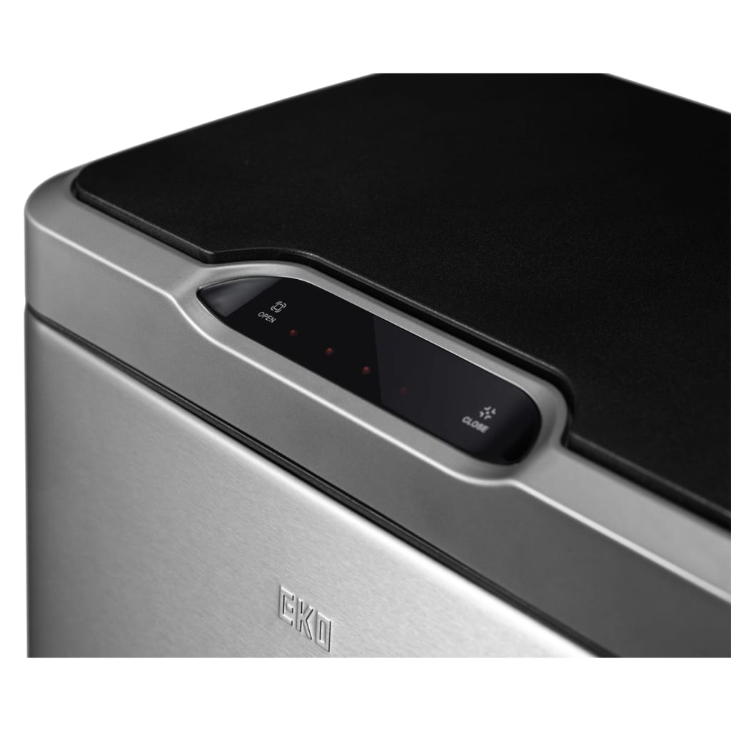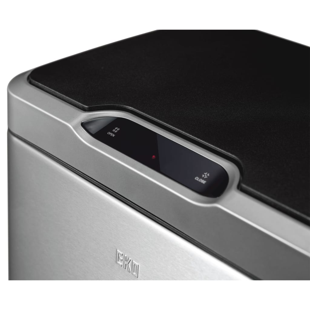 Deze matzilveren Mirage vuilnisbak met sensor van EKO, met inhoud van 40 L, is een trendy afvalbak voor afvalscheiding en recycling.